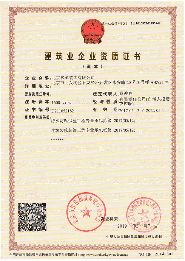 您现在的位置:北京多彩装饰有限公司 > 荣誉资质
